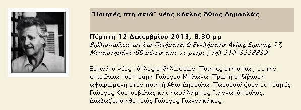 Το κείμενο της ομιλίας μου στην εκδήλωση «Ποιητές στη σκιά» για τον Άθω Δημουλά.