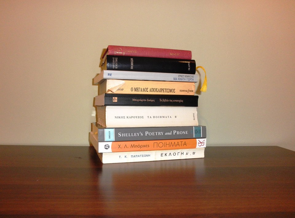 Τη θυμήθηκα πάντως σήμερα εκείνη τη μικρή λίστα που είχα φτιάξει τότε, γιατί τελευταία όλο και συχνότερα διαπιστώνω πόσο λίγα βιβλία απ’ όσα βρίσκονται στη βιβλιοθήκη μου είναι πραγματικά πολύ σημαντικά για μένα. Εισέρχομαι πιθανώς στην περίοδο εκείνη της αναγνωστικής ωριμότητας που ο βιβλιοφάγος δεν φορτώνει πια, αλλά αδειάζει, σιγά-σιγά και με προσοχή και με άγχος και με τύψεις, τη βιβλιοθήκη του. Κι ο θεός βοηθός!